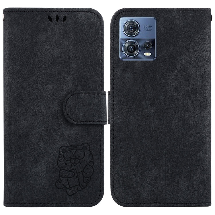 Funda para Motorola Moto S30 Pro 5G de Cuero con Relieve Little Tiger (Negro)