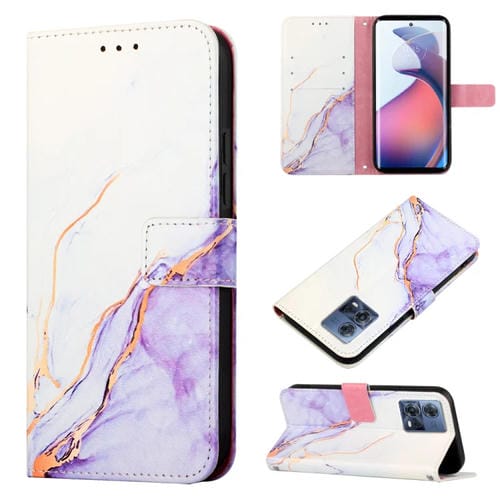 Funda de Cuero con Tapa para Motorola Moto S30 Pro 5G Pt003 Patrón de Mármol (Blanco Púrpura)