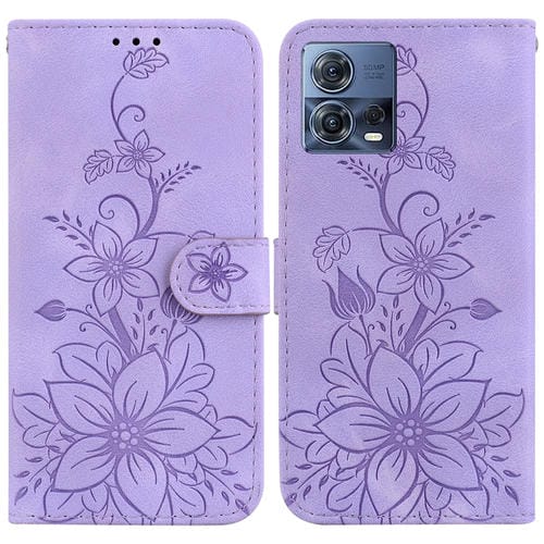 Funda para Motorola Moto S30 Pro / Edge 30 Fusion 5G de Cuero con Relieve Lily (Púrpura)