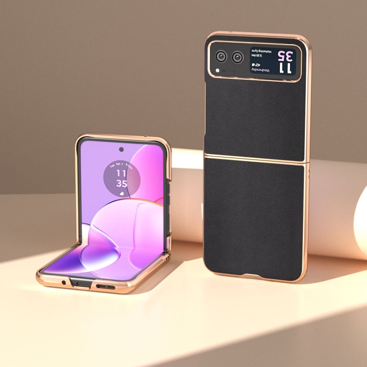 Funda para Motorola Razr 40 Serie Xiaoya de Cuero Genuino con Nanochapado (Negro)