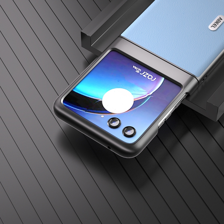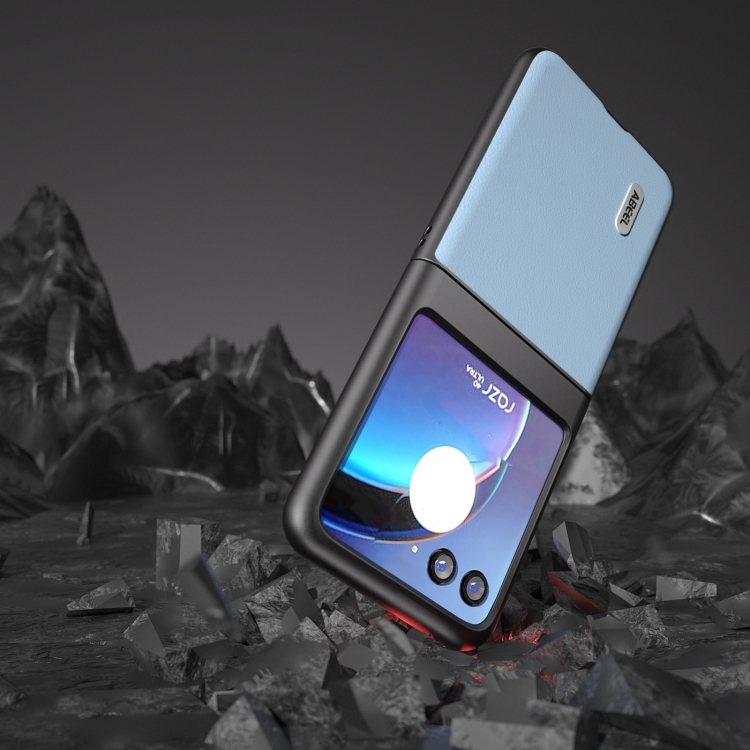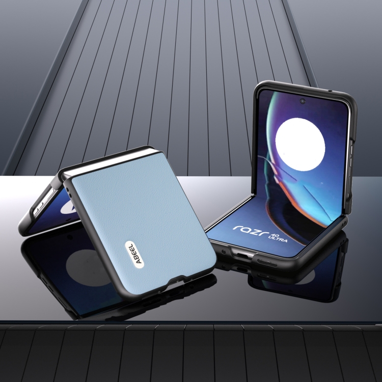 Funda de Teléfono Motorola Razr 40 Ultra Abeel con Borde Negro Wave de Cuero Genuino (Azul)