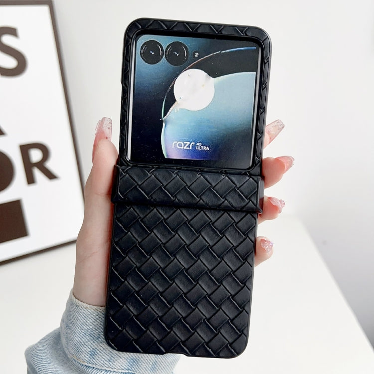 Funda para Motorola Razr 40 Ultra Juego de 3 Piezas PU Plegable con Textura Tejida (Negro)