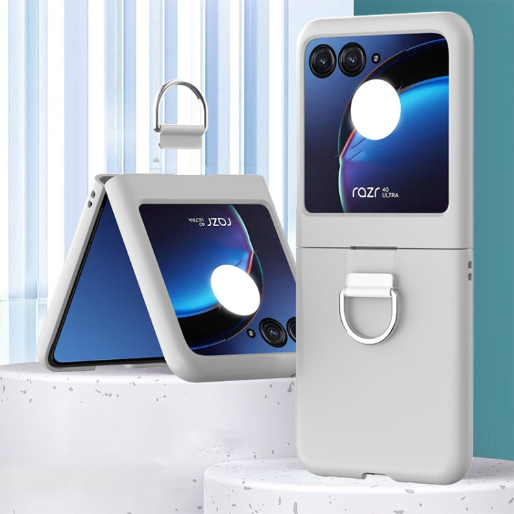 Funda de Silicona con Anillo para Motorola Razr 40 Ultra Skin Feel Plegable (Blanco)