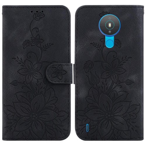 Funda de Cuero En Relieve para Nokia 1.4 Lily para Teléfono (Negro)