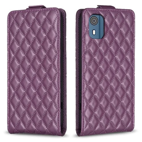 Funda de Cuero con Tapa Vertical para Nokia C02 Diamond Lattice (Púrpura Oscuro)
