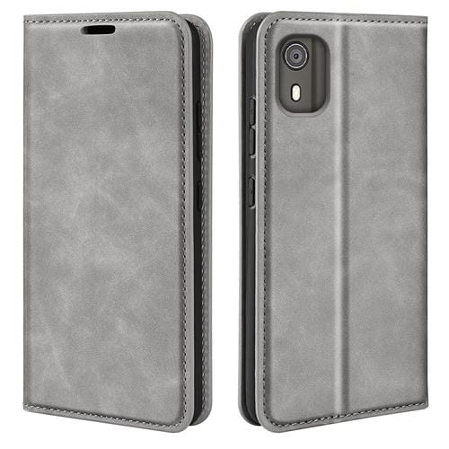 Funda de Cuero para Nokia C02 con Succión Magnética de Piel Retro (Gris)