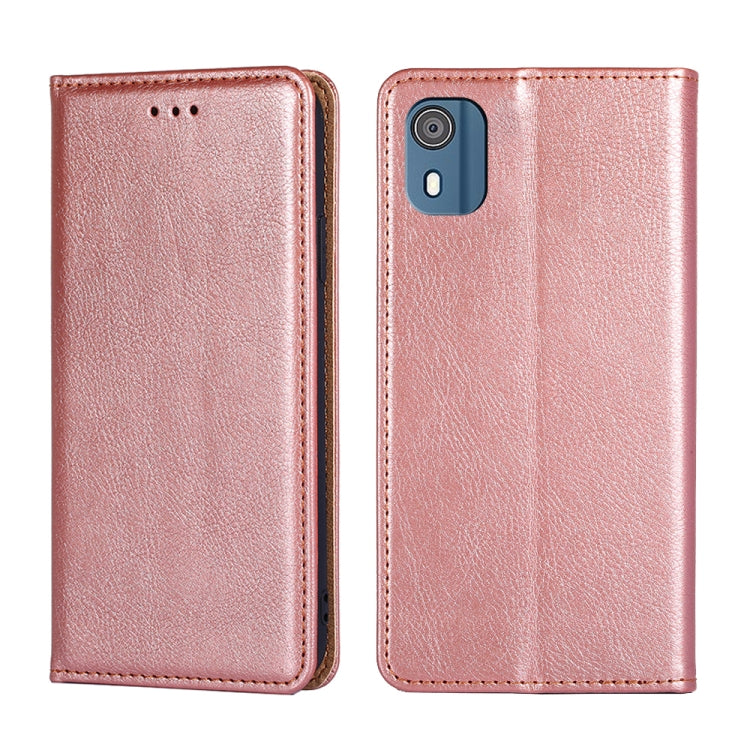 Estuche de Cuero Magnético para Nokia C02 TA-1522 con Color Sólido de Aceite Brillante (Oro Rosa)