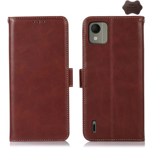 Funda de Teléfono Nokia C110 Cuero Genuino Crazy Horse Textura Magnética Rfid (Marrón)