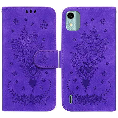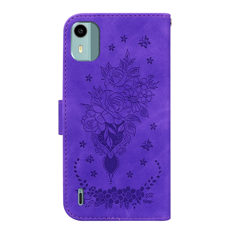 Funda para Nokia C12 Butterfly Rose de Cuero en Relieve (Púrpura)