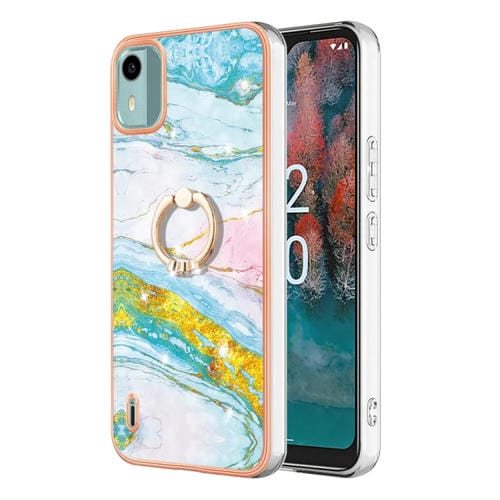 Funda para Nokia C12 Imd TPU Mármol Galvanizado con Soporte para Anillo (Verde)