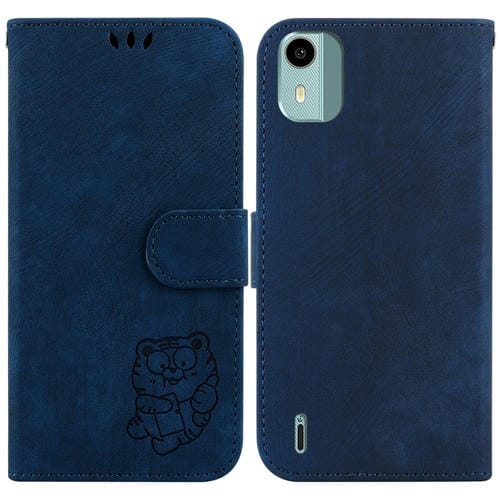 Funda para Teléfono Nokia C12 de Cuero con Relieve Little Tiger (Azul Oscuro)