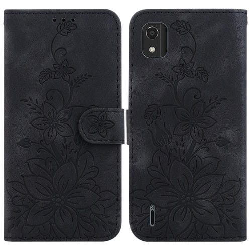 For Nokia C2 2nd Edition Lily Embossed Leather Phone Case (Black)