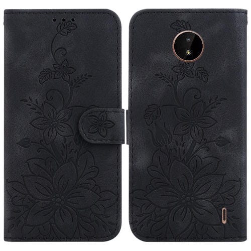 For Nokia C20 / C10 Lily Embossed Leather Phone Case Cover (Black)