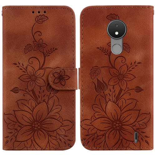 For Nokia C21 Lily Embossed Leather Phone Case Cover(Brown)