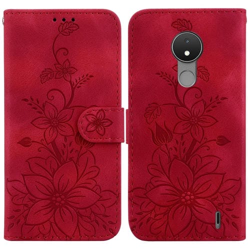 For Nokia C21 Lily Embossed Leather Phone Case(Red)