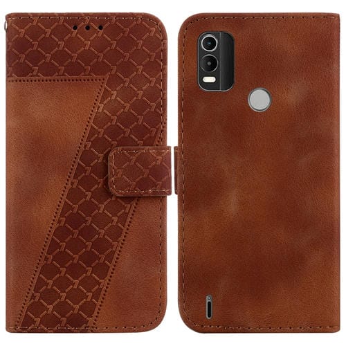 Estuche para Teléfono Nokia C21 Plus de Cuero En Relieve en Forma de 7 (Marrón)