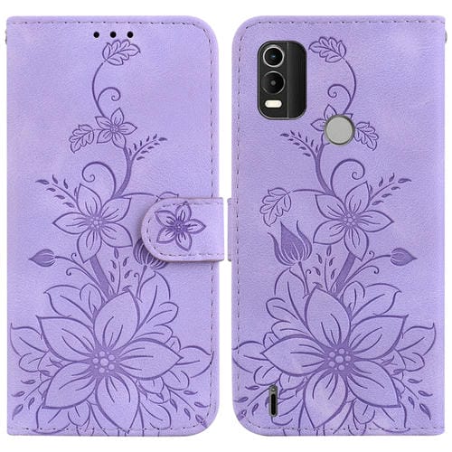 For Nokia C21 Plus Lily Embossed Leather Case (Purple)