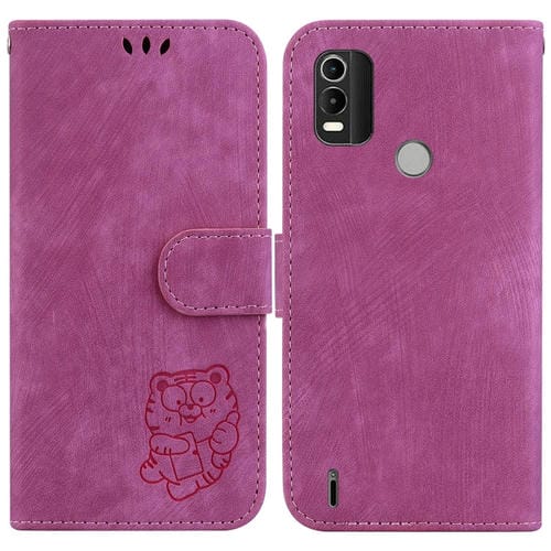 Funda de Cuero para Nokia C21 Plus con Relieve Little Tiger (Rojo Rosa)