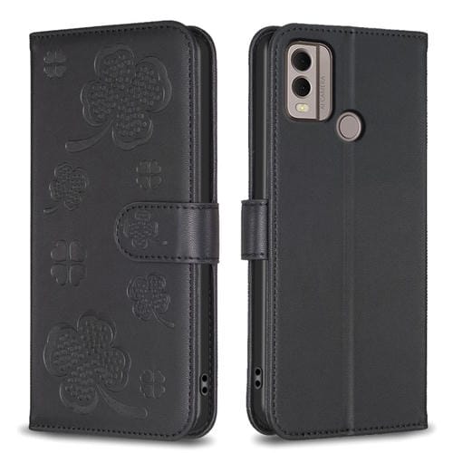 Funda para Teléfono Nokia C22 de Cuero con Relieve de Cuatro Hojas (Negro)