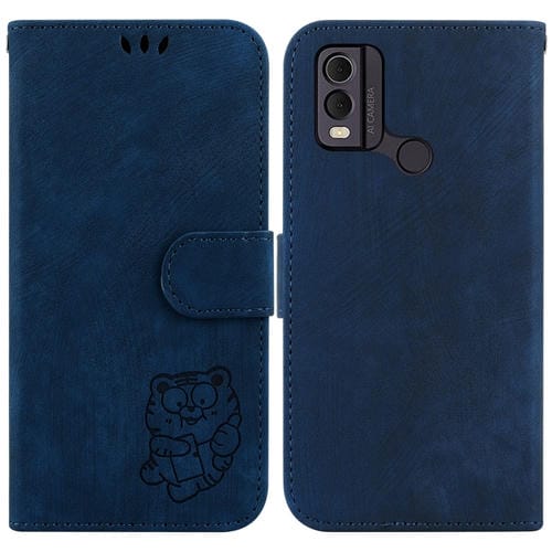 Funda para Teléfono Nokia C22 de Cuero con Relieve Little Tiger (Azul Oscuro)