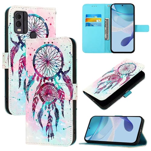 Funda para Nokia C22 de Cuero con Tapa Horizontal y Pintura 3D (Campanas de Viento)