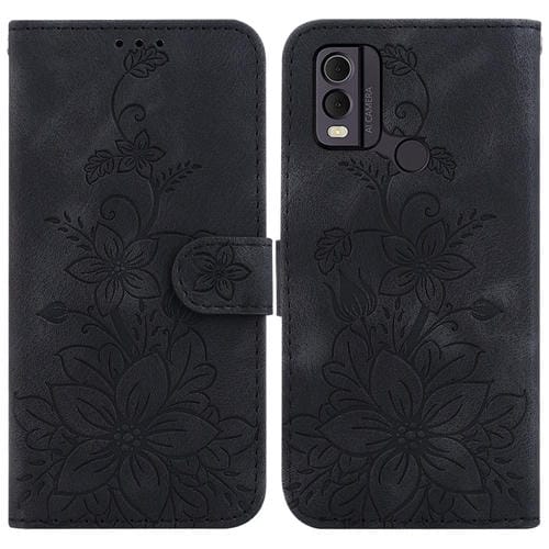 For Nokia C22 Lily Embossed Leather Phone Case Cover (Black)