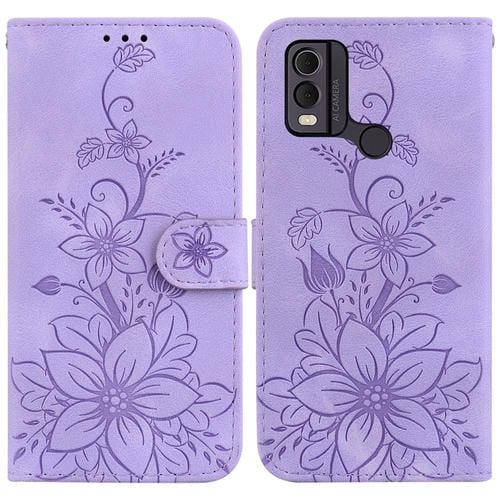 For Nokia C22 Lily Embossed Leather Phone Case (Purple)