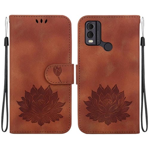 Funda de Cuero en Relieve para Nokia C22 Lotus Teléfono (Marrón)