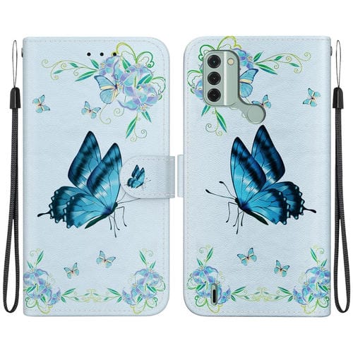 Funda para Nokia C31 de Cuero con Dibujo Coloreado y Textura de Cristal (Pensamientos Azules)