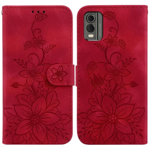 For Nokia C32 Lily Embossed Leather Phone Case Cover (Red)
