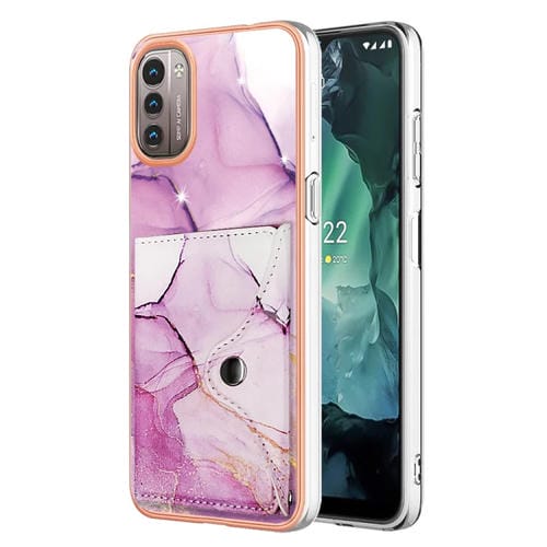Estuche para teléfono Nokia G21 G11 con ranura para tarjeta y patrón de mármol (Oro Rosa Púrpura)