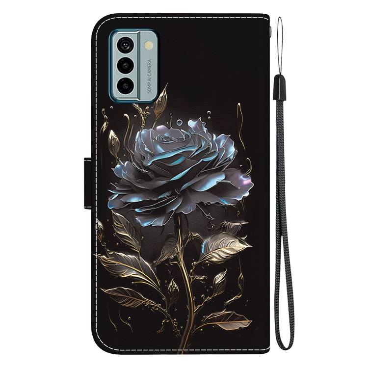 Estuche de Cuero para Nokia G22 con Dibujo Coloreado y Textura de Cristal (Rosa Negra)