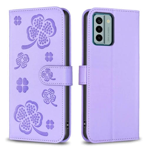 Funda de Cuero para Nokia G22 con Relieve de Cuatro Hojas (Púrpura)