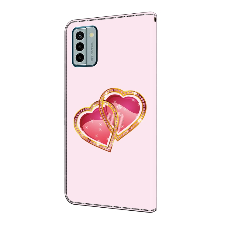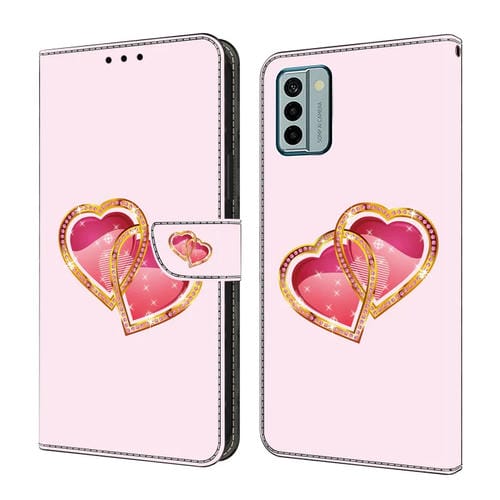Funda de Cuero para Nokia G22 con Cristales Pintada (Love Peach)