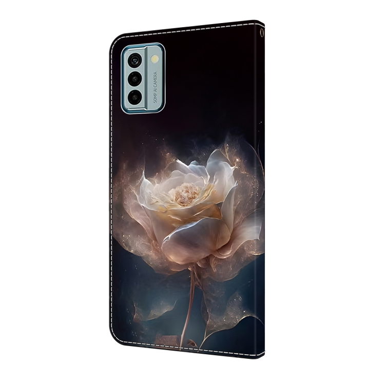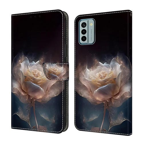 Funda de Cuero para Nokia G22 con Cristales Pintada (Peonía)