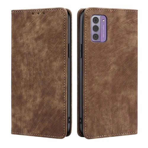 Estuche para Nokia G42 5G Rfid de Cuero Magnético con Cepillo Antirrobo (Marrón)