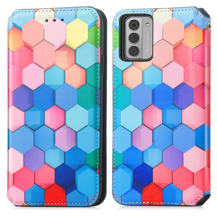 Funda de Cuero Magnética Caseneo para Nokia G42 (Cuadrados de Colores)