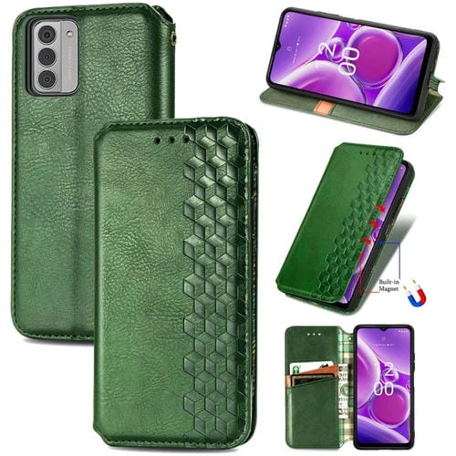 Funda de Cuero Magnético Prensado para Nokia G42 Cubic Grid (Verde)