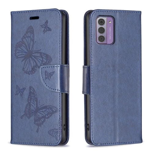 Funda de Cuero de Pu para Nokia G42/G310 con Tapa Horizontal Estampado Dos Mariposas (Azul Oscuro)