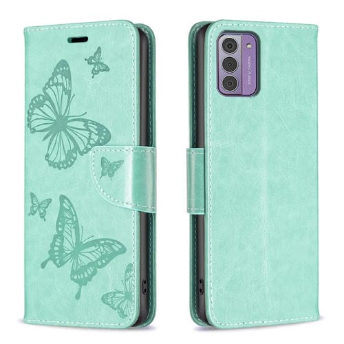 Funda de Cuero de PU para Nokia G42/G310 con Tapa Horizontal Estampado Dos Mariposas (Verde)