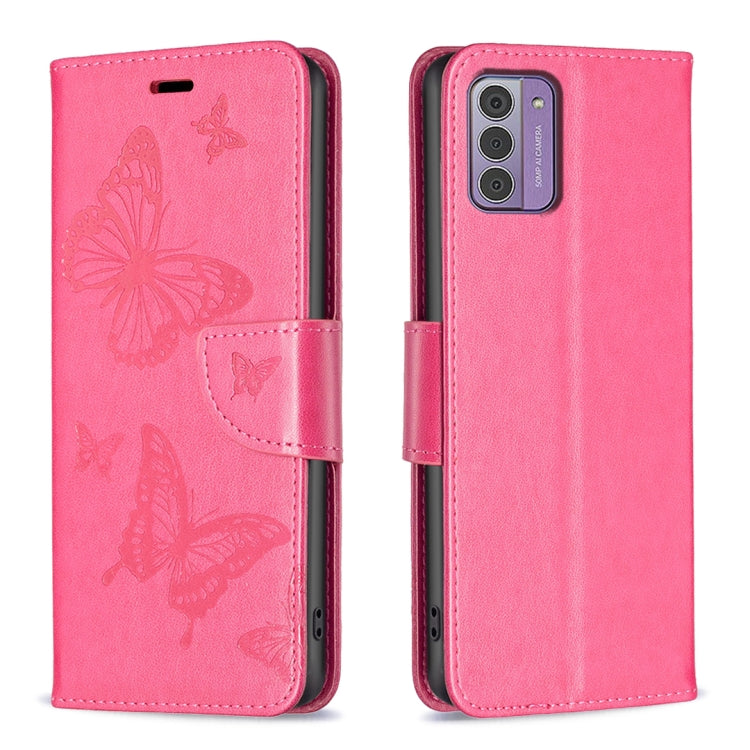 Estuche de Cuero PU para Nokia G42/G310 con Tapa Horizontal y Patrón de Mariposas (Rosa Roja)