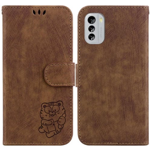 Funda de Cuero En Relieve para Nokia G60 Little Tiger Teléfono (Marrón)