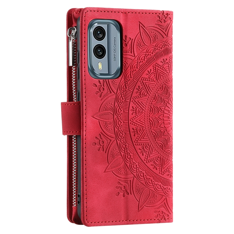 Funda para Nokia X30 de Cuero con Cremallera Totem y MultiTarjeta (Rojo)