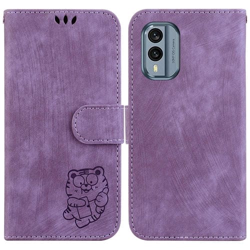 Funda de Cuero para Nokia X30 Little Tiger con Relieve (Púrpura)