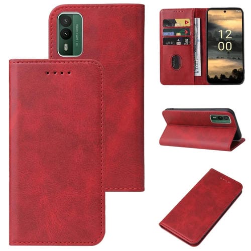 Funda de Cuero para Nokia Xr21 con Cierre Magnético (Rojo)