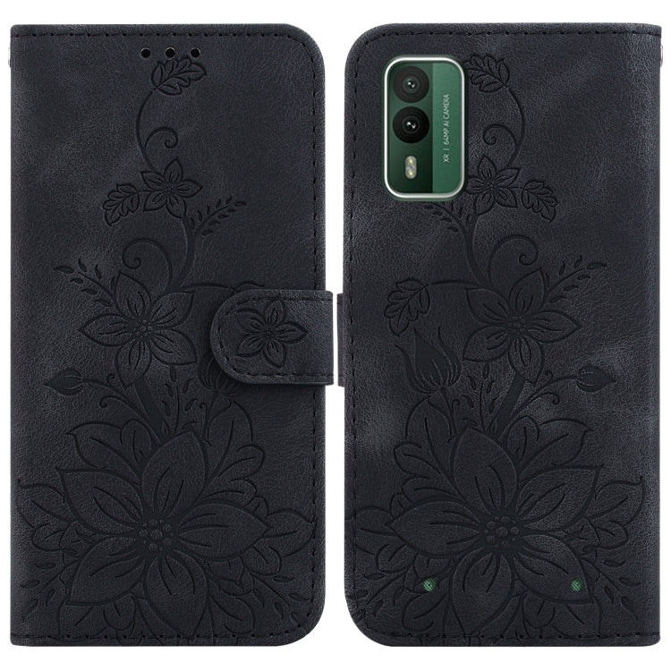For Nokia XR21 Lily Embossed Leather Phone Case(Black)