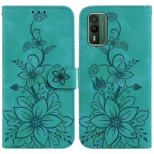 For Nokia XR21 Lily Embossed Leather Phone Case(Green)