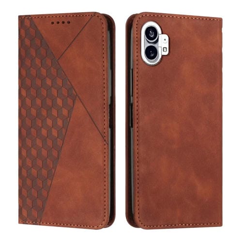 Estuche para teléfono Notar patrón diamante empalme piel sensación magnética (Marrón)