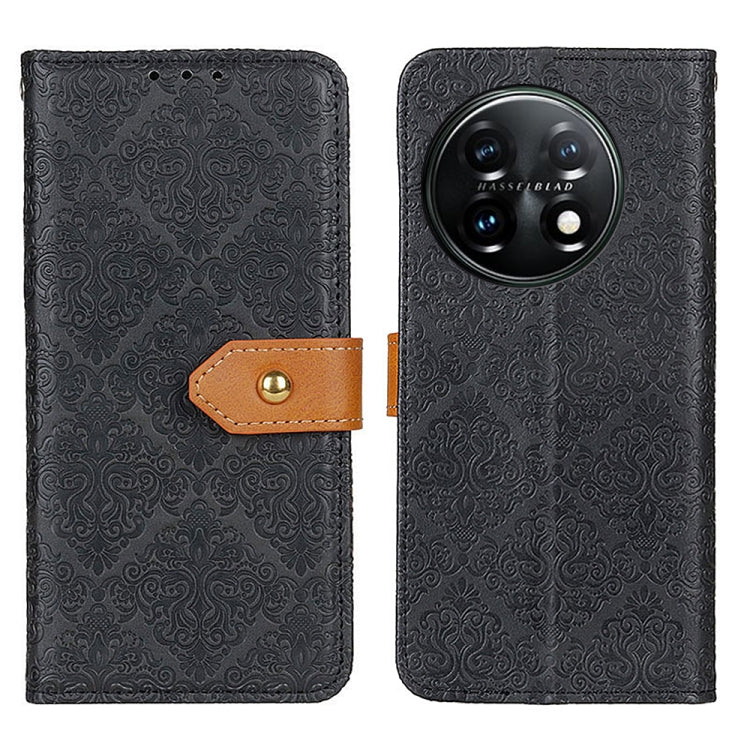 - 1x Estuche para OnePlus 11 5G de Cuero con Tapa en Relieve Floral Europeo (Negro)