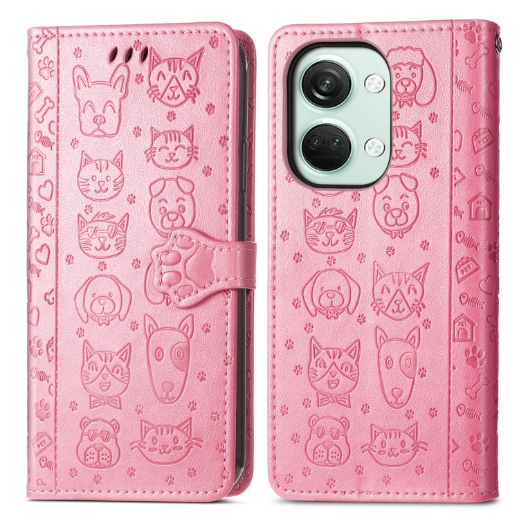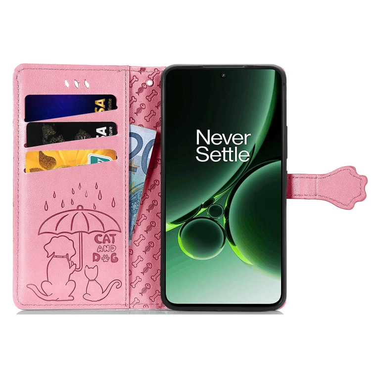 Funda para OnePlus Nord 3 de Cuero con Relieve de Gato y Perro (Rosa)